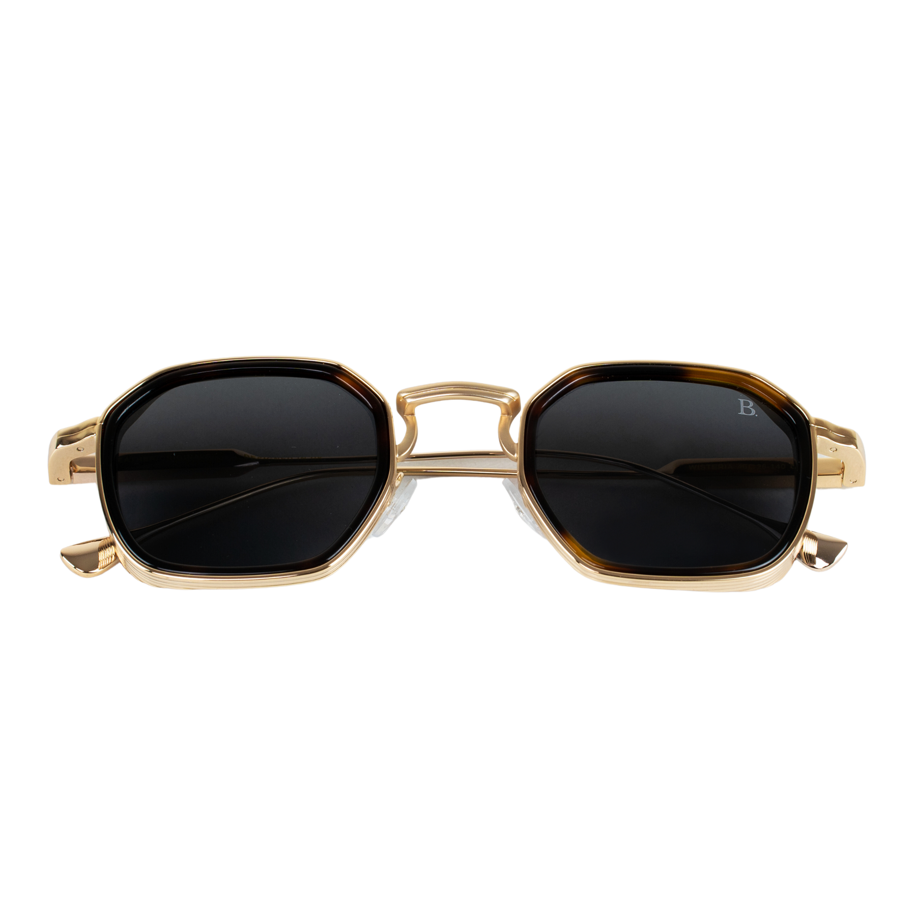 Découvrez les lunettes de soleil Wisteria - un design vintage spécial avec une touche moderne. Les verres polarisés gris offrent une protection optimale, tandis que la monture hexagonale en métal se décline en doré et argenté. Son design unique associe une couche d'acétate enrobée par un un cadre métallique et des branches métalliques. Optez pour Wisteria et laissez-vous séduire par son allure rétro-chic lors de vos journées ensoleillées.