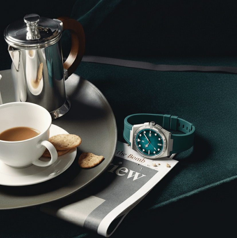 Inspirée de l’élégance britannique et de la précision japonaise, Ascot revisite la montre sportive avec une allure sophistiquée. Son cadran acier texturé capte la lumière avec subtilité, tandis que ses index luminescents et ses aiguilles facettées garantissent une lisibilité parfaite. Son bracelet en caoutchouc vert émeraude allie modernité, confort et caractère affirmé.